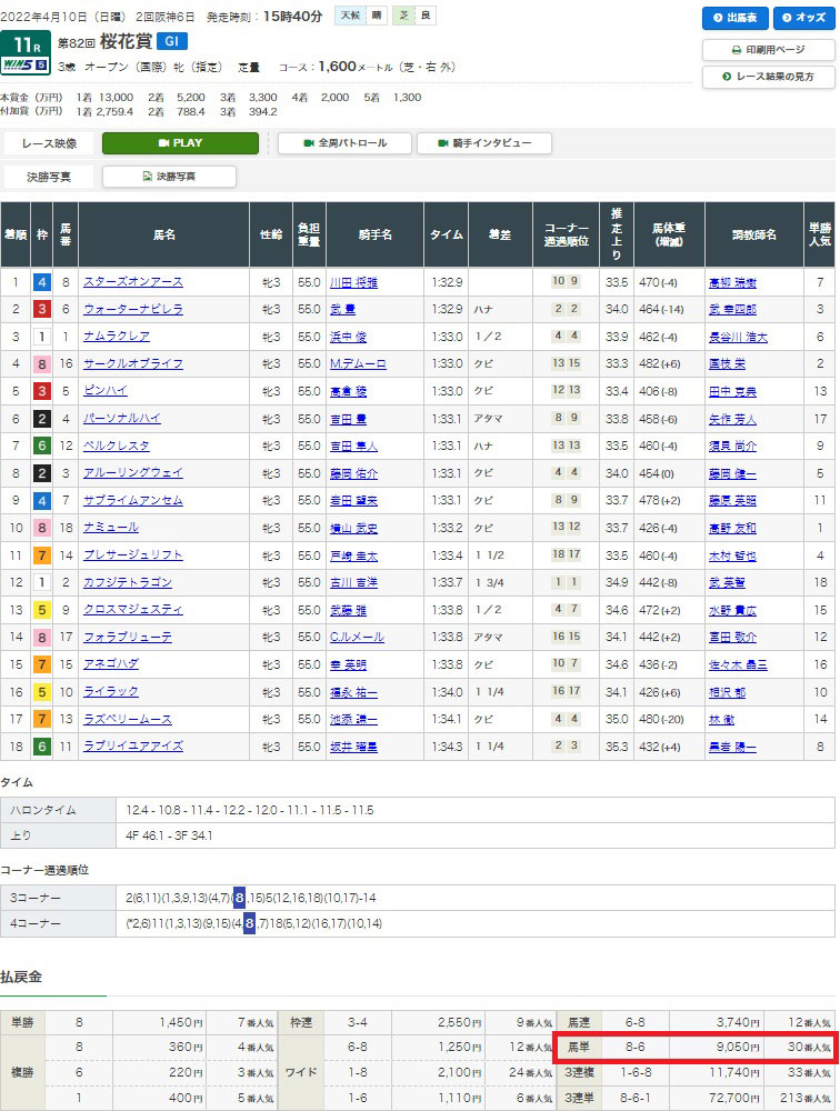【検証レース:4/10 阪神11R GⅠ 桜花賞】