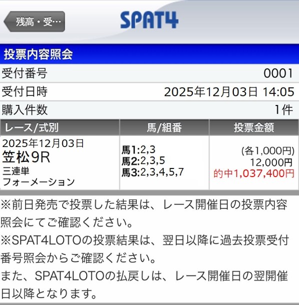 日曜日の買い目も外れていましたね💦 どんまいっす