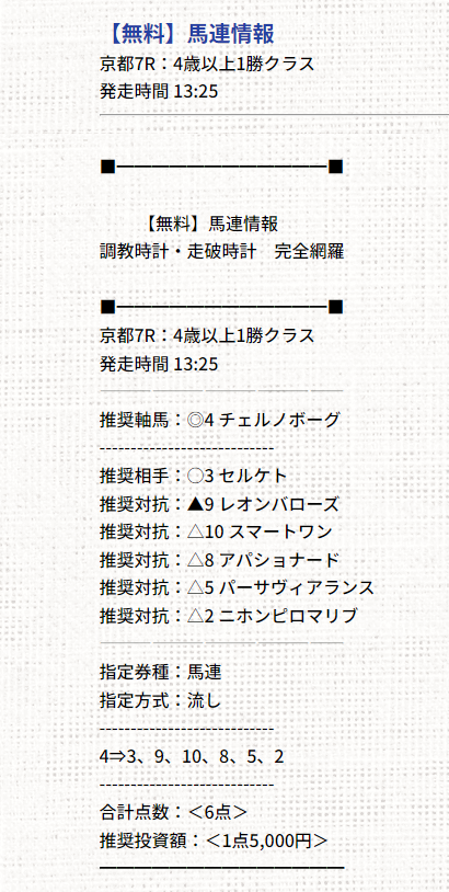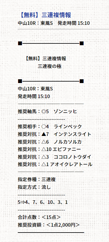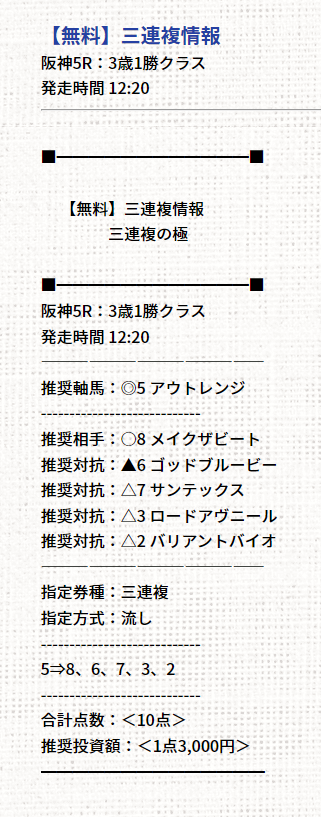 よっしゃ!無料情報のこの予想のまま買って三連複的中で6万GETだぜ!