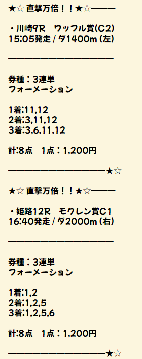 どちらの馬券もだめでした…