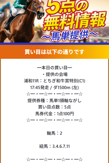 試しに参加した無料情報が61.8倍の馬連当てました!