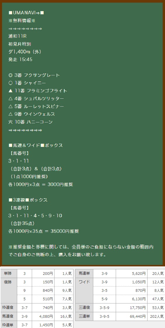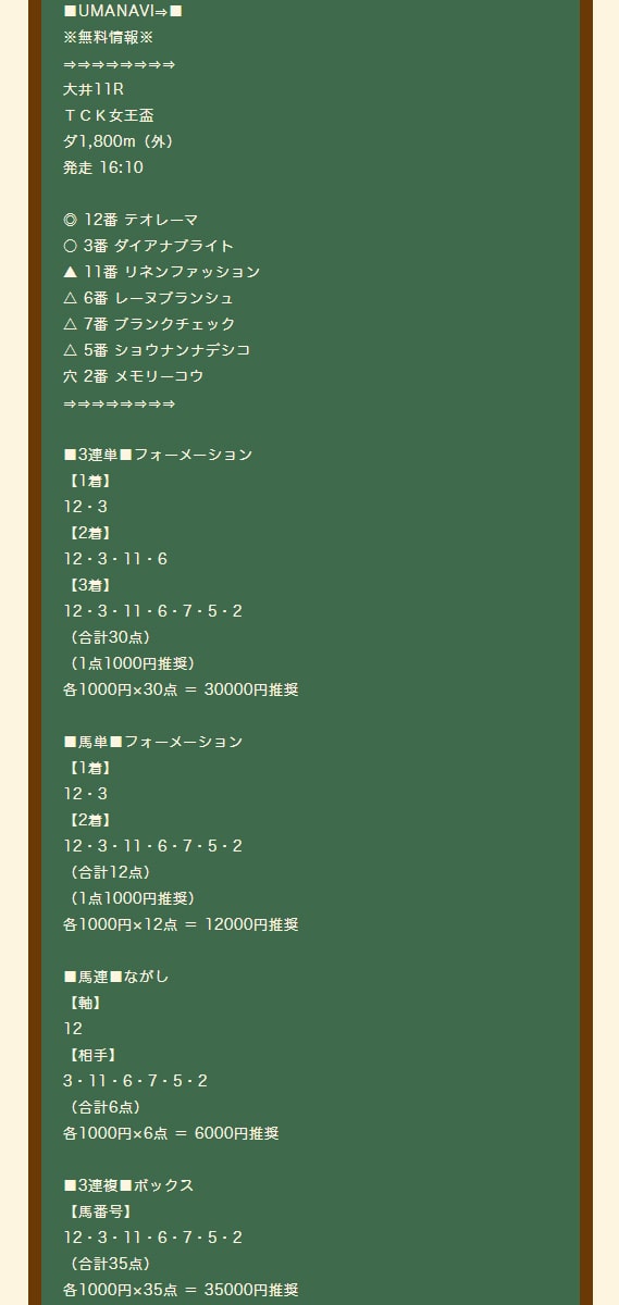 無料情報3連複万馬券的中でまさかの17万払戻! 明日の無料情報も楽しみで仕事が手につかなそう!