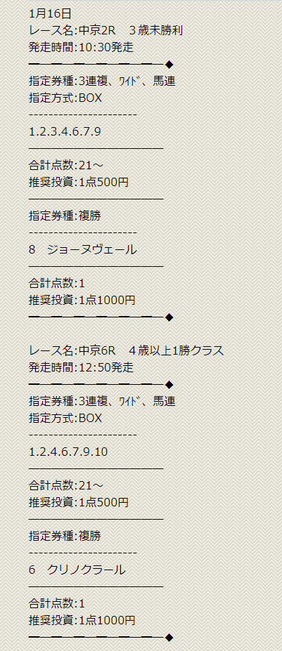 少点数買い目のご提供!
